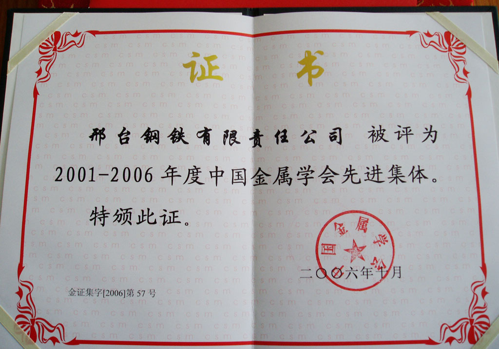 2007年3月,邢鋼獲得由河北省企業(yè)聯(lián)合會(huì)頒發(fā)的“河北省明星企業(yè)”榮譽(yù)稱(chēng)號(hào)。