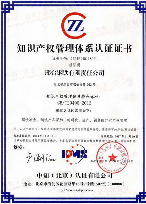 - 邢鋼順利通過知識(shí)產(chǎn)權(quán)管理體系認(rèn)證