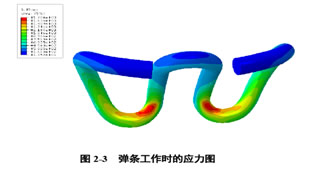 彈條是高速鐵路扣件系統(tǒng)中的核心部件。我國高速鐵路采用的是ω形彈條。彈條的作用是將鋼軌牢牢地固定在鐵墊板上,除必須有一定扣壓力外,還必須能承受來自鋼軌的垂向力、橫向力和縱向力的作用。在工作過程中,彈條不僅有彎曲變形,還有扭曲變形,本身呈現(xiàn)比較復雜的應(yīng)力狀態(tài)。下圖是在初始扣壓力下用有限元軟件分析的彈條應(yīng)力圖。從圖中可以看出:兩臂與中間兩肢連接處是變形集中的部位,急劇的彎曲變形引起彈條疲勞壽命降低。應(yīng)力最大處在彈條外側(cè)兩臂與中間兩肢連接之處,這也是彈條實際失效之處。