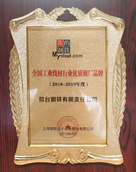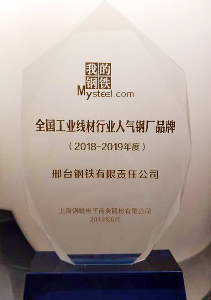 組委會(huì)根據(jù)國(guó)內(nèi)工業(yè)線材生產(chǎn)企業(yè)品牌、質(zhì)量表現(xiàn)、市場(chǎng)反饋、網(wǎng)絡(luò)投票等多個(gè)環(huán)節(jié)的評(píng)比結(jié)果,評(píng)選出2018-2019年度“全國(guó)工業(yè)線材行業(yè)優(yōu)質(zhì)鋼廠品牌”和“全國(guó)工業(yè)線材行業(yè)人氣鋼廠品牌”,并頒發(fā)了獎(jiǎng)牌和獎(jiǎng)杯。邢鋼榮獲此兩項(xiàng)榮譽(yù)稱號(hào)。