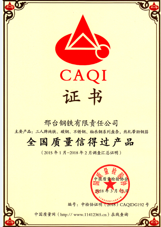 軸承鋼被稱為“鋼中之王”,頂級(jí)軸承鋼代表了特鋼企業(yè)的最高冶金水平,廣泛應(yīng)用于礦山機(jī)械、精密機(jī)床、冶金設(shè)備、重型裝備與高檔轎車等重大裝備領(lǐng)域和風(fēng)力發(fā)電、高鐵動(dòng)車及航空航天等新興產(chǎn)業(yè)領(lǐng)域,而邢鋼就是其中的行業(yè)佼佼者。2018年,邢鋼軸承鋼系列盤(pán)條被中國(guó)質(zhì)量檢驗(yàn)協(xié)會(huì)授予“全國(guó)質(zhì)量信得過(guò)產(chǎn)品”,2019年,再次斬獲“全國(guó)鋼鐵線材行業(yè)領(lǐng)先企業(yè)“殊榮,邢鋼軸承鋼系列產(chǎn)品多次獲得冶金產(chǎn)品實(shí)物質(zhì)量金杯獎(jiǎng)、冶金行業(yè)品質(zhì)卓越產(chǎn)品等榮譽(yù),現(xiàn)已成為邢鋼綠色鋼鐵產(chǎn)品的一道靚麗名片。
