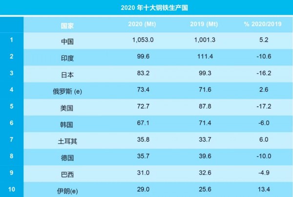 據(jù)世界鋼協(xié)統(tǒng)計,2020年,全球粗鋼產(chǎn)量達(dá)到18.64億噸,同比下降0.9%。