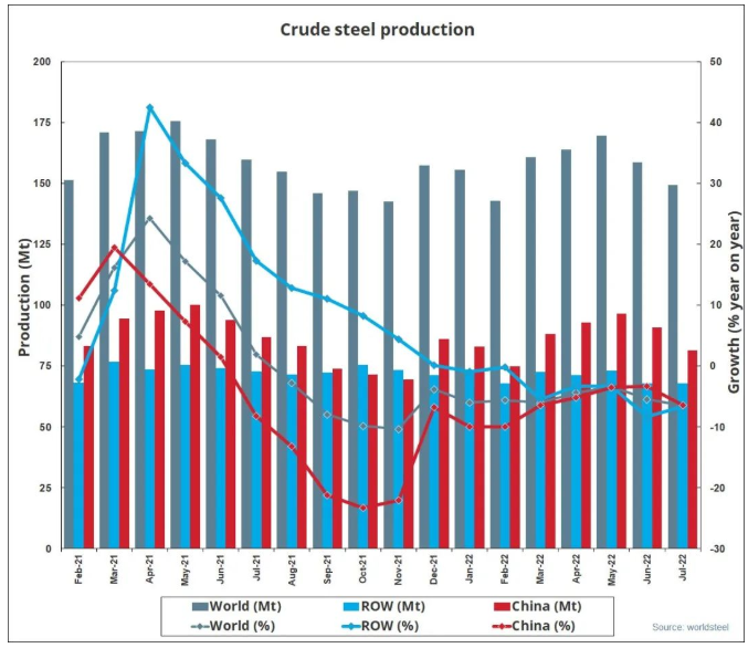 世界鋼協(xié):7月全球粗鋼產(chǎn)量為1.493億噸,同比下降6.5%