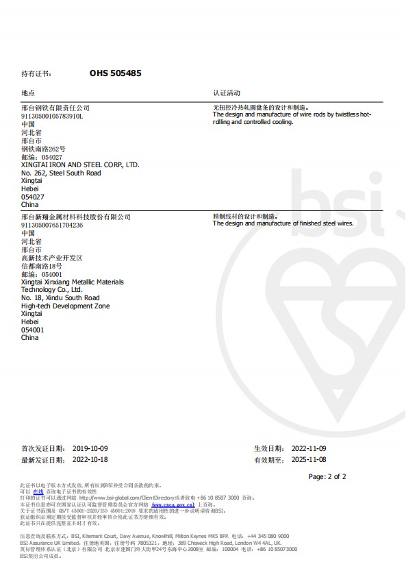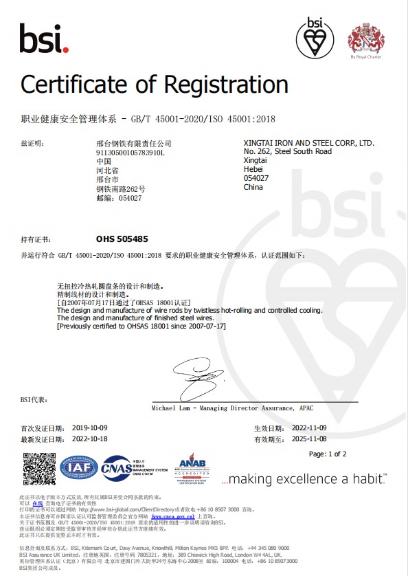 為進一步推進ISO14001:2015環(huán)境管理體系和ISO45001:2018職業(yè)健康安全管理體系持續(xù)、有效、適宜運行,邢鋼于8月22日—26日邀請第三方認證機構(gòu)BSI(英標標準協(xié)會)8名審核專家,對公司環(huán)安管理體系開展了系統(tǒng)性換證審核。審核組對邢鋼在職業(yè)健康和環(huán)保工作上的重視和進步,給予了充分肯定,同時也提出系統(tǒng)性的指導意見和改進建議。針對問題和建議,各部門分析根本原因、制定整改計劃、落實糾正措施、并舉一反三,得到審核專家一致認可和高度評價。日前,邢鋼順利獲得BSI環(huán)安管理體系換證證書。至此,邢鋼已連續(xù)16年通過BSI公司環(huán)安管理體系認證審核。