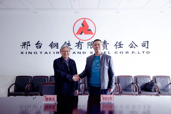 邢鋼董事長張育明與KOCKS(德國) General Manager Sales,Stefan Schwarz簽訂三輥軋機(jī)設(shè)備合同。