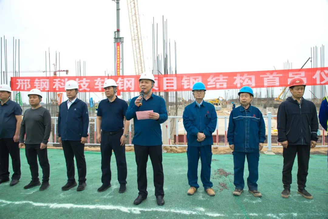 威縣縣委副書記、政府縣長高凱英代表威縣縣委縣政府對項目建設(shè)的這一標(biāo)志性的大事喜事表示祝賀,向建設(shè)者表示問候。希望邢鋼以軋鋼工程鋼結(jié)構(gòu)首吊為契機(jī),按照預(yù)定工期,進(jìn)一步加強(qiáng)項目管理,科學(xué)組織實施,各部門、各環(huán)節(jié)齊頭并進(jìn),確保一期項目如期投產(chǎn);希望中國五冶充分發(fā)揮自身的理、技術(shù)和資源等各方面優(yōu)勢,在確保施工安全和工程質(zhì)量的前提下,善于探索創(chuàng)新,勇于攻堅克難,確保項目建設(shè)高效推進(jìn)。威縣縣委、縣政府及相關(guān)部門將一如既往的關(guān)心、支持服務(wù)邢鋼項目建設(shè),舉全縣之力、盡全縣所能,為邢鋼項目實施更好地協(xié)調(diào)服務(wù)。