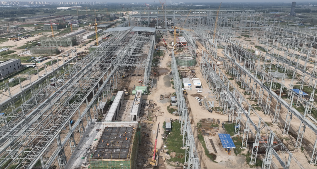 走在項(xiàng)目現(xiàn)場,隨處可見矗立的鋼結(jié)構(gòu)和封頂?shù)慕ㄖ黧w。項(xiàng)目主要部分從西向東分別是煉鐵區(qū)域、煉鋼區(qū)域和軋鋼區(qū)域,項(xiàng)目鋼結(jié)構(gòu)工程已全面鋪開。