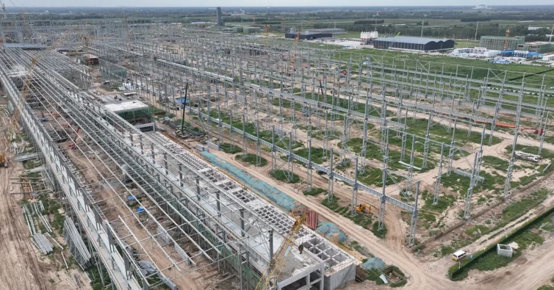 工程車來回穿梭的車轍印、大型機(jī)械的轟鳴聲、矗立的鋼結(jié)構(gòu)和封頂?shù)慕ㄖ黧w、塔吊揮舞著長臂加緊為建設(shè)者運(yùn)送物資……日前,位于威縣高新區(qū)的邢臺鋼鐵有限責(zé)任公司搬遷升級項(xiàng)目(以下簡稱“邢鋼搬遷升級項(xiàng)目”)正在有序緊張施工中,2000余名工人分布在各個(gè)作業(yè)面,項(xiàng)目已全面進(jìn)入地上鋼結(jié)構(gòu)及主線設(shè)備基礎(chǔ)施工階段,項(xiàng)目一期預(yù)計(jì)今年年底建成投產(chǎn)。