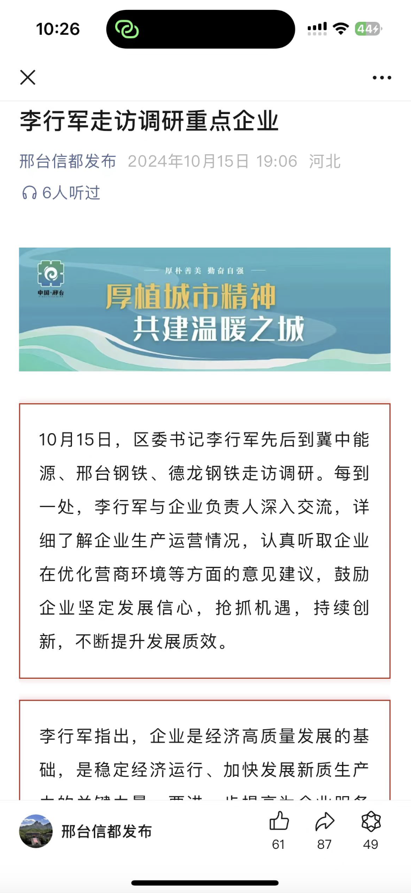 邢臺(tái)信都發(fā)布:李行軍走訪調(diào)研重點(diǎn)企業(yè)