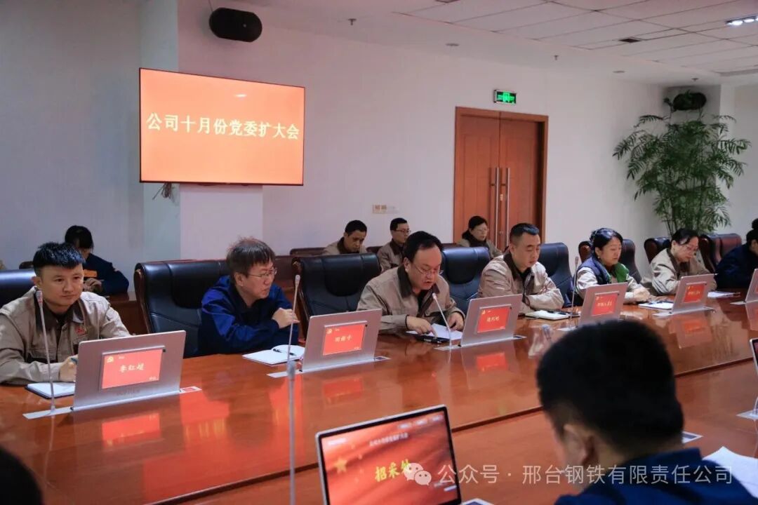 10月30日,公司黨委在公司辦公樓207會議室召開10月份黨委擴大會,公司領(lǐng)導(dǎo)田新中、魏利剛、李紅超等高層及全體中層管理人員、主任級、副主任專業(yè)職務(wù)人員參加了會議。駐威縣新廠人員通過視頻會議系統(tǒng)參會。