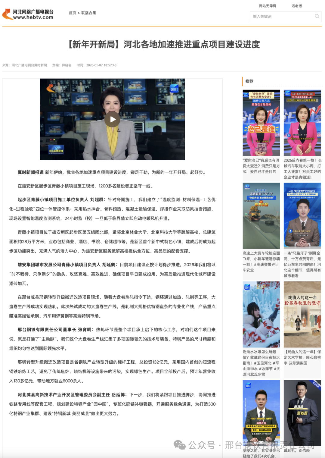 邢臺(tái)鋼鐵有限責(zé)任公司董事長(zhǎng) 張育明:熱軋環(huán)節(jié)是整個(gè)項(xiàng)目承上啟下的核心工序,對(duì)咱們這個(gè)項(xiàng)目來(lái)說(shuō),就是打通了“主動(dòng)脈”,我們這個(gè)大盤卷生產(chǎn)線匯集了多項(xiàng)國(guó)際領(lǐng)先的技術(shù)與裝備,特鋼產(chǎn)品的尺寸精度和組織均勻性達(dá)到國(guó)際領(lǐng)先水平。